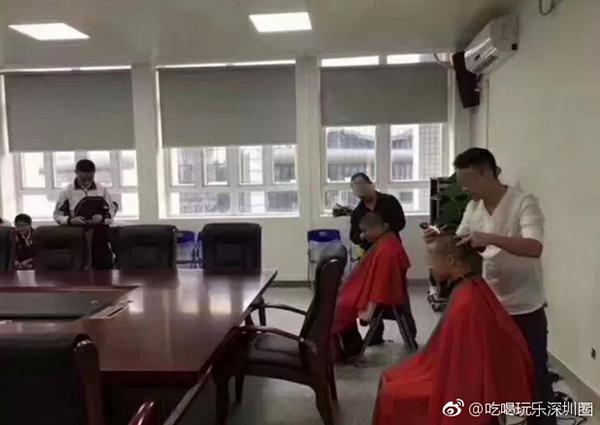 微博帖子称,深圳某职校的学生统统被剃光头,整整一个机电部的男生都必须剪。还配了多张图片,有成群光头男生在教室上课的场景,还有学校关于男生剪发的通知,甚至还配有男生剪发的场景,可谓有文有图“有真相”。帖子一发出,引起了不小的议论,有的网友认为把学生的头发剪得和囚犯一样不妥。发型是体现个人审美爱好的重要方面,现在,学生都没有了决定自己外表的权力了,学校这样做是不是有点过了?