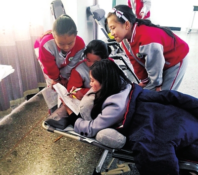 每次到学校,学生们看到她马上拥上前去,并搀扶着她的两个胳膊上楼,生怕再次摔倒。