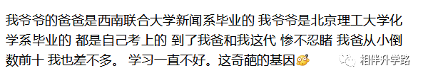 虽然龙生龙,凤生凤,阶级固化的比例更多,也就是北京状元说的,“父母厉害,家庭好的孩子们成功概率更大” ,那种学渣父母成就学霸,基因突变的概率并不算大。