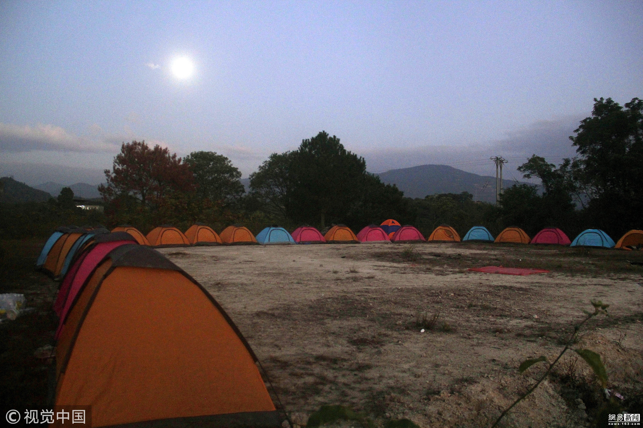 学生们露天的宿营帐篷,半夜湿冷的空气还是把他们从梦中冻醒。他们只能在半睡半醒中熬到天亮。