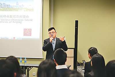 北京海外学人中心作为北京市海外人才引进的重要渠道,负责北京市“海聚工程”引进海外高层次人才的认定评估工作,为市属机关、高校、科研单位、医疗卫生机构、国有企业、企业园区等推荐海外高层次人才和项目,并为留学人员来京就业创业设立服务平台,满足留学人员的工作生活需求。北京海外学人中心积极加强与海外协会的合作,为国内用人单位与海外留学人员架设沟通桥梁,积极探索高效的引才措施。11月29日,北京海外学人中心与法国里昂中国行业家协会、巴黎协办方等一起,向留法人员讲解回京工作、创业的相关政策,得到了中国驻里昂总领馆的大力支持。