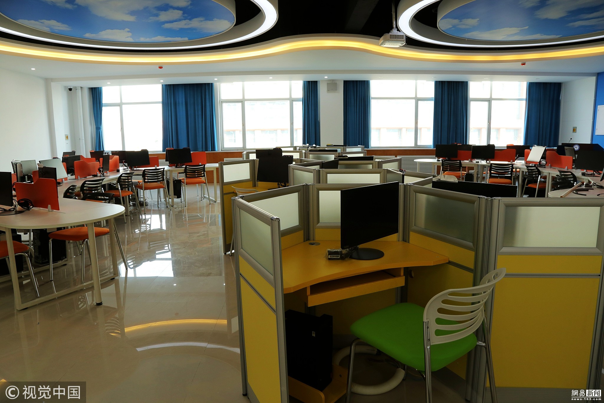 2017年12月7日,河南郑州,一学院在教学楼新建成了虚拟仿真管理中心,因设备高端、颜值大气、科技感十足而走红网络,据校方官微介绍,中心投入建设资金2350万元。