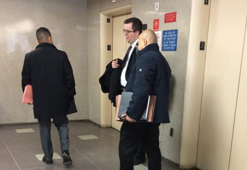 助理检察官夏特(中)与109分局华裔警探Wing Har(右)出庭。(美国《世界日报》记者朱泽人/摄影)