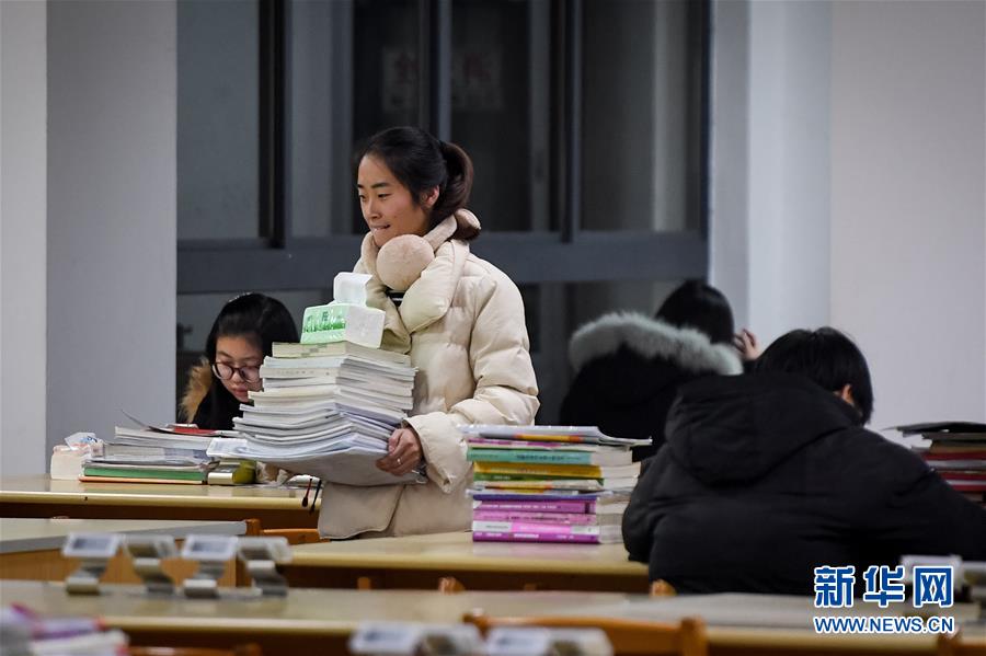 12月17日清晨,备考考生在位于安徽省六安市的皖西学院图书馆阅览室复习。2018年全国硕士研究生招生考试将于12月23日开始,“考研大军”复习备考进入冲刺阶段。
