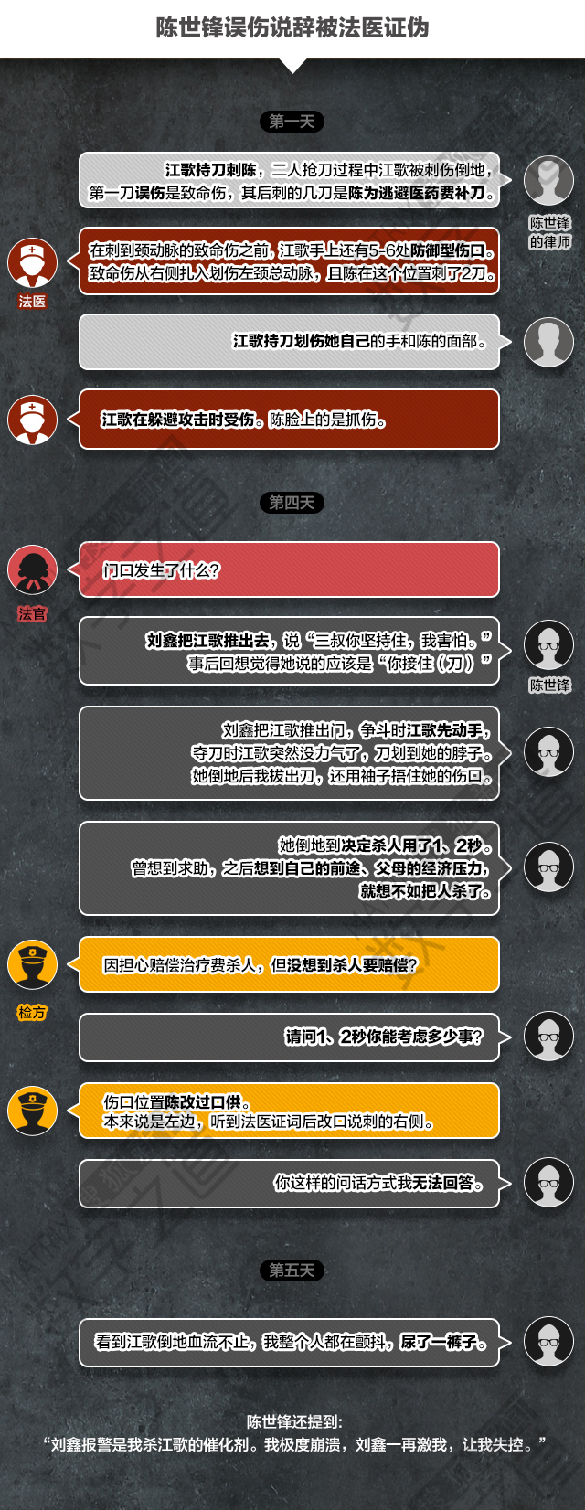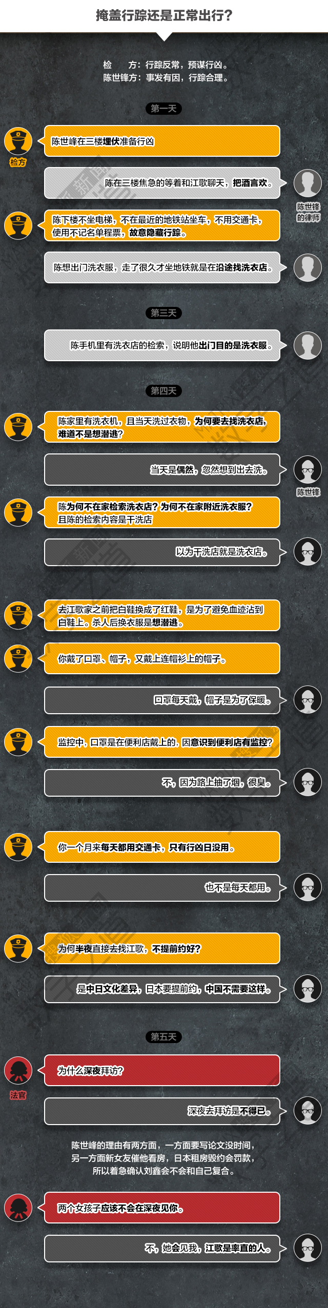 细观对话不难看出陈世锋在检察官的追问下对自己异常行为的辩解存在诸多疑点。