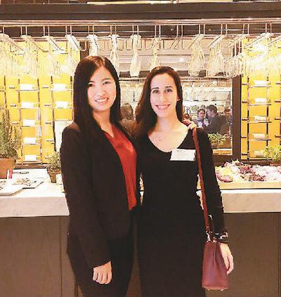 就读于美国康奈尔大学酒店管理专业的张悦芊(左)积极参加校内外的活动。图为她在学院校友会活动上的留影。