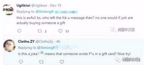 网友helloguys:觉得这件事情不简单。许多商店都有这种买商品附贺卡服务。这个流程是自动化的。人工更改贺卡字句的可能性,不能说没有,但难度非常大。字句都是由顾客在网上输入,然后贮存的数据库中。打印贺卡时,由软件从数据库中提取,然后自动打印。这个过程没有人工干预的可能。因此那张“特别”贺卡,不是由普通流程制作出来的。