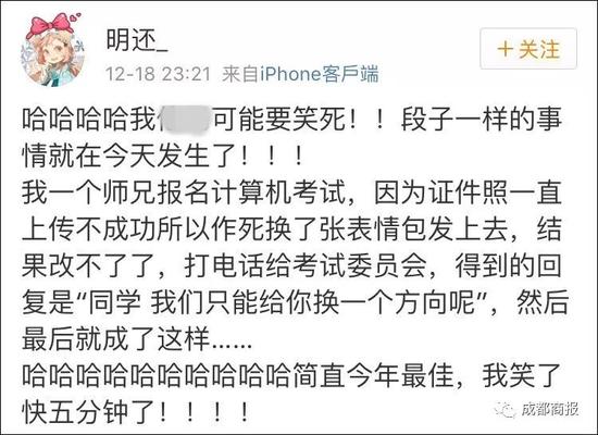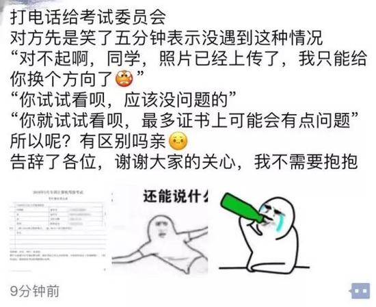 然而更坑的是:照片传上去就不能修改了……打电话给考试委员会,工作人员笑了5分钟后表示:我只能给你换个方向了哈哈哈哈哈哈哈哈