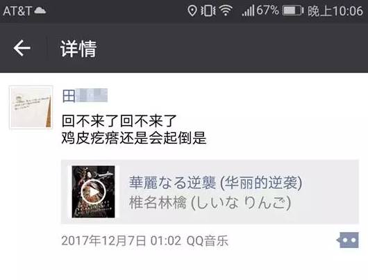 ▲Tian生前发送的最后一条朋友圈