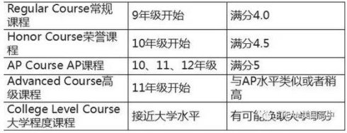 一般而言,美国高中的课程通常分为常规课程,荣誉课程, AP课程, 高级课程, 大学程度课程等几种类别: