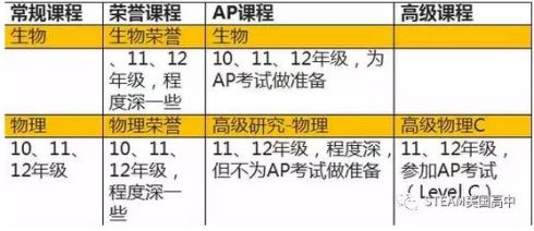 高级课程和AP课程的教学目的并不相同,高级课程多为学校自己开设,对学生的学术探究能力提出了一定要求;AP课程多针对统一的AP考试设置的。