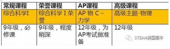 每所学校会根据自己的教学理念对课程进行调整,并不一定完全遵循荣誉到大学程度课程的层级。