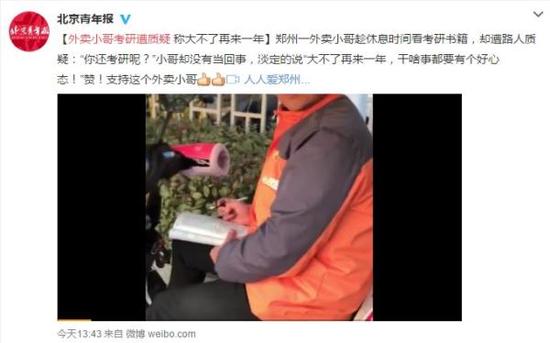 对此,外卖小哥淡定表示:“准备还可以,试试呗,今年不行明年再来,干啥事都要有个好心态!”
