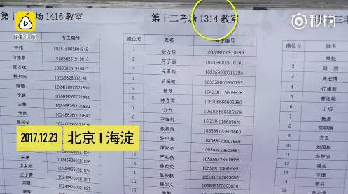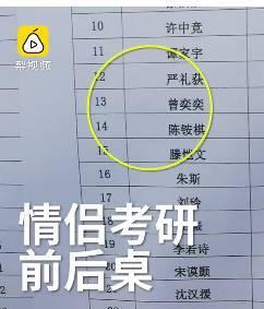 据梨视频消息,12月23号,北京市海淀区,一对考研的情侣被分到了同一个学校同一个教室,考场是1314号教室: