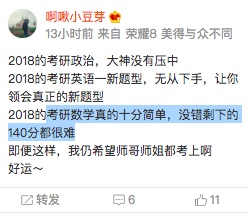 英语考试结束后,“英语一新题型”还冲上了微博热搜。原来,考研英语一卷中,阅读部分出现了新题型排序题,很多考生看到新题型一下子乱了阵脚。