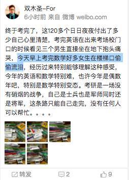 谈到数学的难度,据微博网友反映,有人形容为“难到爆”,有些考生考完都哭了: