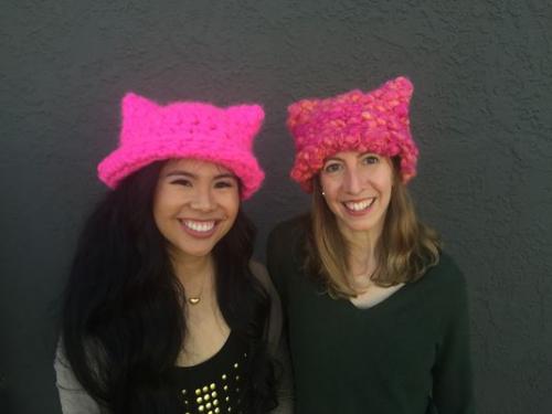 徐景梧来自美国洛杉矶,她最初的想法很简单,觉得去华盛顿游行会非常冷,所以设计了这一顶颜色鲜艳又明显的帽子。选择猫咪造型是因为特朗普的一句话,“只要抓住她们的私处(pussy),你就可以做任何事情”,因此徐景梧决定用这一语双关来讽刺特朗普对女性的不尊重。