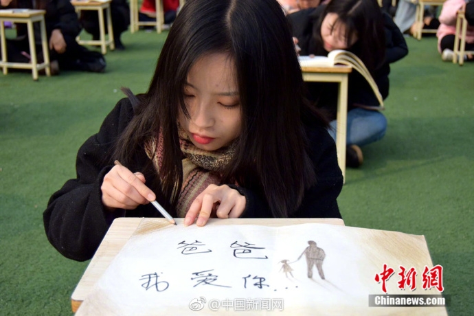 近日,成都一高校的操场上,近千名学生席地而坐写起家书。有的写满了3页纸,有的在纸上画了小时候的自己和变老的爸爸,并写道:“当父母老的时候,我要牵着你们的手慢慢变老...“家书写好后,由辅导员帮学生们寄出。