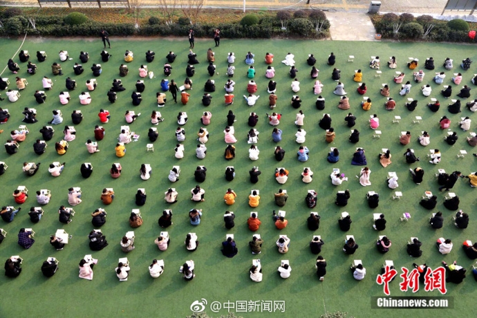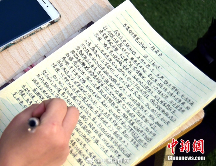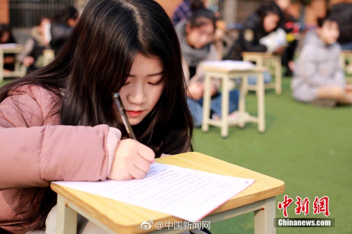 近日,成都一高校的操场上,近千名学生席地而坐写起家书,场面壮观,内容真挚。
