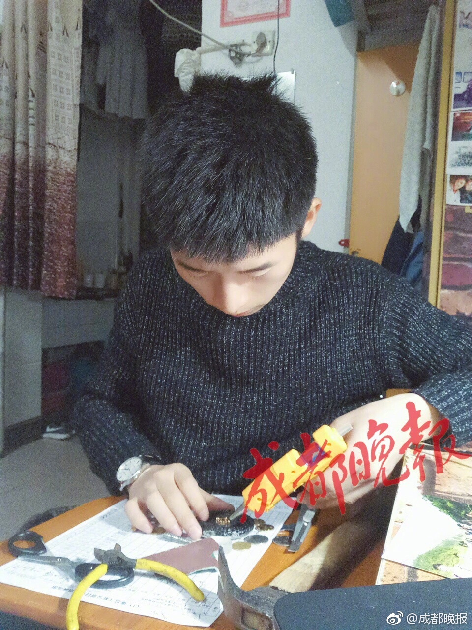 近日,武昌理工学院环境艺术设计专业16级4班班长高亚文,为全班30位同学都准备了元旦礼物。他说,礼物是根据每个同学的喜好选的,大部分是自己做的,几乎不重样,总共用了200块钱左右,都是平日兼职打工所得。
