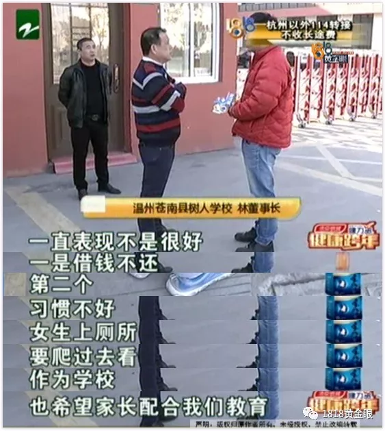 苍南县树人学校林董事长:“孩子在这边呢,一直表现不是很好,一是借钱不还,借钱,对,借钱不还,第二个,习惯不好,女生上厕所,要爬过去看,这样作为学校,也希望家长配合我们教育。”