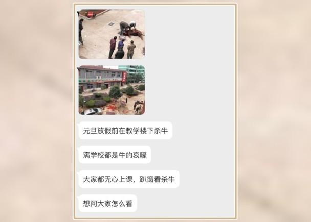 发贴者表示,杀牛期间,“整个学校都是牛的哀嚎声”,并指响彻全校的声音严重影响教学。事件曝光后引发网民热议,批评校方“无遮无掩”下杀牛,让学生留下心理阴影,又指现场太血腥恐怖,手法太过残暴。