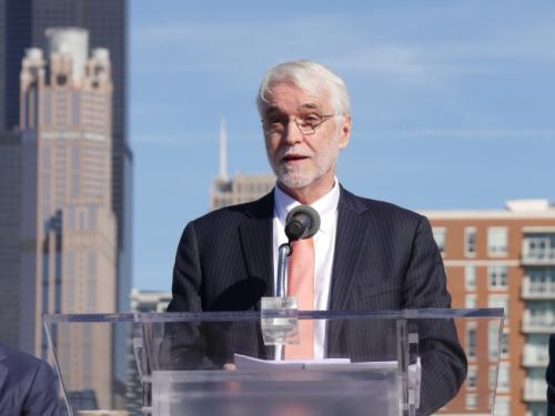 伊利诺伊大学校长齐麟恩表示,三所伊利诺伊州立大学新学年将不调涨2018入学的州内新生学费。(美国《世界日报》/特派员黄惠玲 摄)