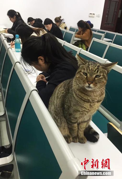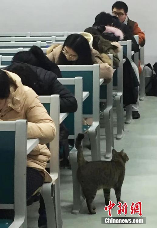 1月9日,生活在南京农业大学校园内的一只在考场内“巡逻监考”的猫被拍摄后,照片上传至该校校园网,引发大学生和网友们的留言和转载,瞬间成为“网红”。伍洁摄