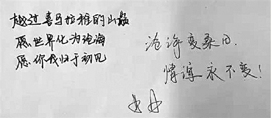 “这样做一方面能让学生重温所学知识,一方面可以让同学们抒发自己的告白、祝福或者回忆。”程老师解释说,“至于为什么选择‘三行情书’这种形式,可能是我自己本人比较喜欢吧。一年前,我也曾布置过类似的作业,在我所教的3个班试行过,同学们兴致都很高,所以今年继续沿袭传统,但扩大了范围,半个年级的学生都参与了。”