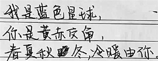 其中一名学生的情诗是这样写的: