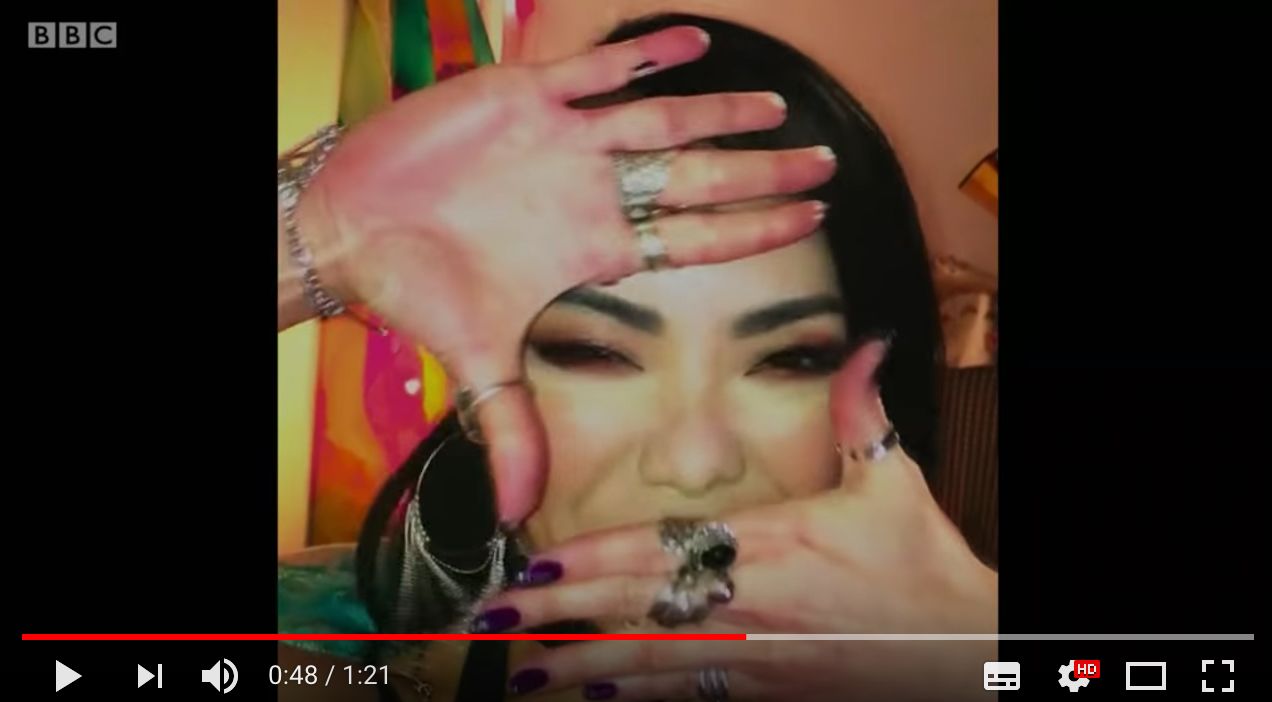 Jackie惟妙惟肖地模仿着亚洲各国的妓女 (图片来源:youtube截图)