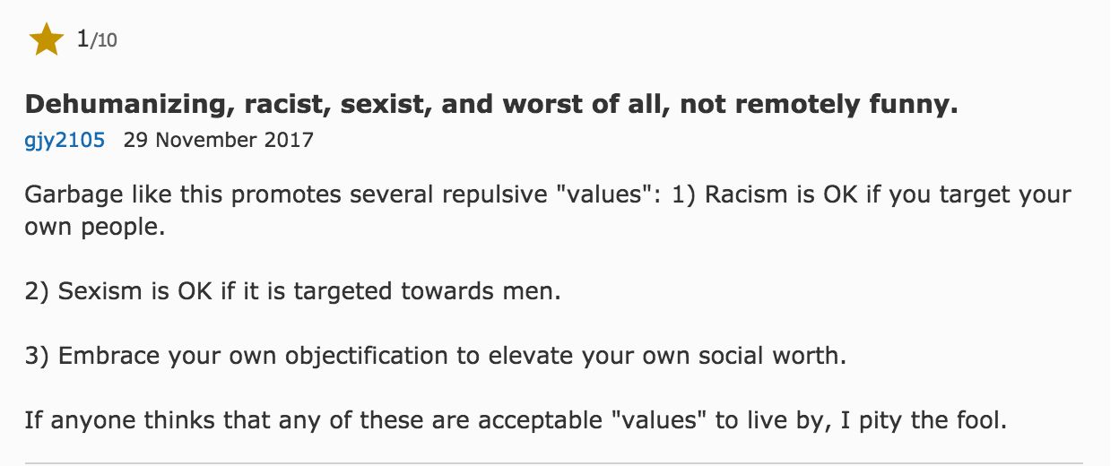 “歧视亚裔、歧视女性并且一点都不好笑”,我想告诉这三位导演编剧及主演:
