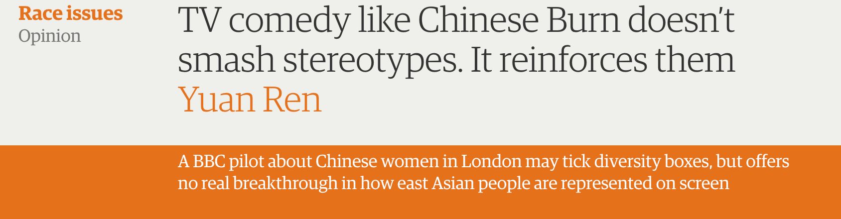 白人拍的美剧,有这样的stereotypes会被骂,所以BBC这次干脆让华裔自己来拍自己。