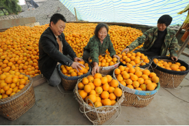 果农们将柑橘分类装框。通讯员 谢捷 摄