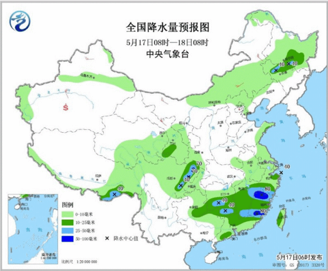 内蒙古、河北、东北地区 将会出现中到大雨,局地有暴雨或雷暴大风;且此次过程持续时间长,最强降水时段在18日。 中央气象台5月17日10时发布强对流天气蓝色预警。
