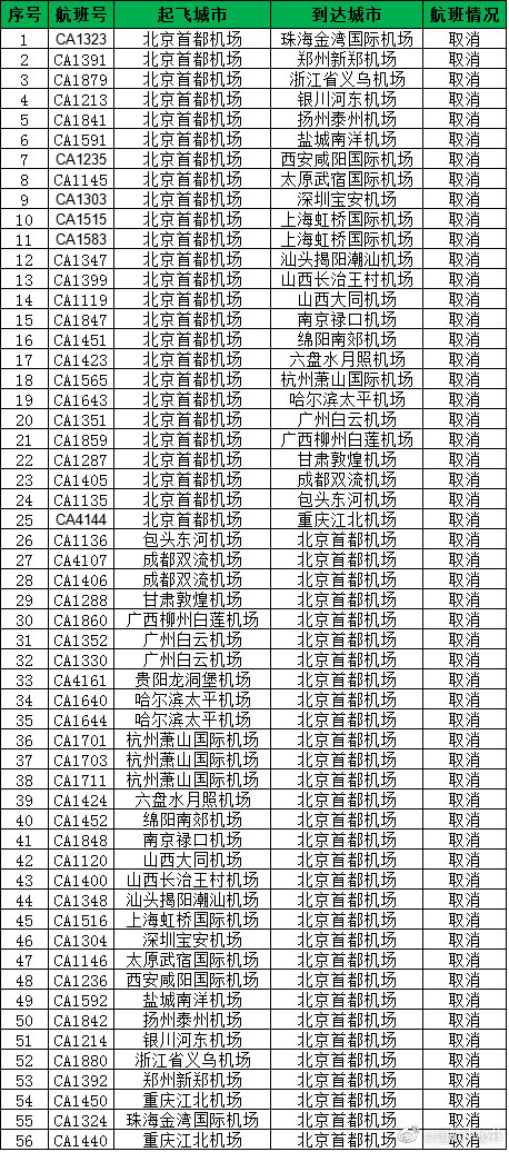截至5月18日13:00,因天气影响,进出港航班取消情况如下: