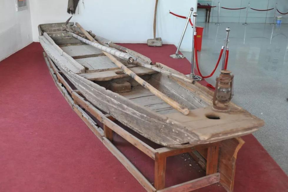 中央红军渡过于都河时所用的马灯、门板、渡船等物。新华社记者 高皓亮 摄
