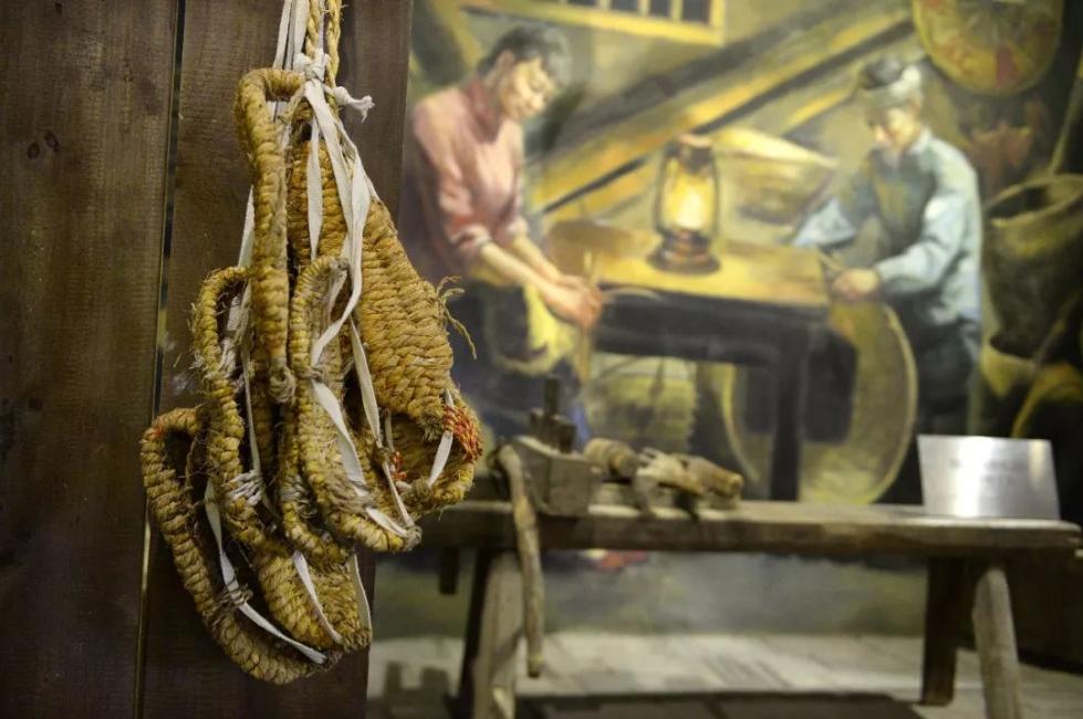 在于都县中央红军长征出发纪念馆内展示的草鞋和制作草鞋的工具。新华社记者 万象 摄