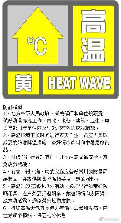 市气象台2019年5月21日16时30分发布高温黄色预警信号:预计22日至25日,本市大部地区日最高气温将达35℃以上,其中23日最高气温局地可达37℃以上,请注意防范。