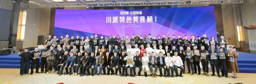 2025年11月15日,四川绵阳 —— 由绵阳市商务局指导,微博•新浪四川、四川电视台峨眉电影频道《四川味道》栏目主办,绵阳市餐饮行业协会承办,四川金宫川派味业有限公司冠名的“中国味道·金宫杯·川派特色美食榜(绵阳站)”颁奖盛典,在绵阳科发铂骊酒店隆重举行。绵阳市商务局领导、川菜非遗传承人、四川省川菜大师、美食推广专家、全川及绵阳本地数十家行业协会负责人、权威媒体代表等五十余位嘉宾齐聚一堂,共同见证“川派特色美食榜(绵阳站)”50强榜单的权威发布。盛典现场还正式聘请著名影视演员赵亮,川菜非遗传承人兰明路为“全国推广大使”。