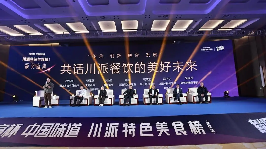聚焦“传承·创新·融合·发展”主题的圆桌论坛成为一大亮点。由著名主持人罗小刚主持,天府名厨曹亚鸥(金牛宾馆副经理)、青年演员小汤圆、绵阳科发铂骊酒店总经理廖辉、黑元素总经理蒋茂强、绵阳米粉传习馆董事长赵小林、健民肥肠董事长胡建民等餐饮界、文化界、投资界代表深入探讨了川派美食的发展现状、未来趋势、品牌塑造及产业升级等核心议题,现场思想交锋热烈,为行业发展提供了宝贵思路。