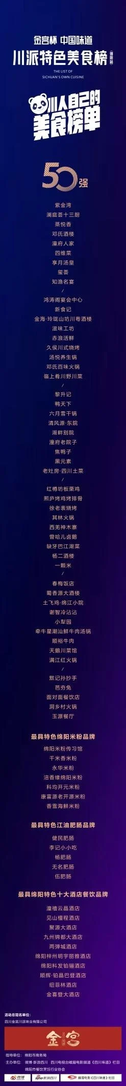 以下为川派特色美食榜(绵阳站)获奖名单: